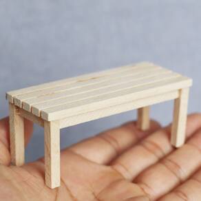 Dimensões: comprimento 9 x largura 3,6 x altura 3,7 cm Material: madeira Peso: 26 g Banco de parque de madeira em miniatura projetado para casas de bonecas em escala 1/12, perfeito para adicionar um toque encantador ao ar livre ao jardim ou pátio de sua casa de bonecas. Feito de madeira inacabada de alta qualidade, este banco simples e elegante adiciona um elemento rústico ao seu mini teatro ou jardim. Ideal para configurações de casas de bonecas, perfeito para criar um espaço ao ar livre aconchegante para figuras em miniatura relaxarem e se divertirem. Não tóxico e seguro para crianças, mas observe que este produto é um modelo de brinquedo e não se destina ao uso humano. Adequado para casas de bonecas e bonecas em escala 1/12, este banco é um ótimo complemento para sua coleção de móveis em miniatura.