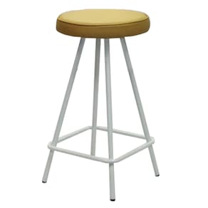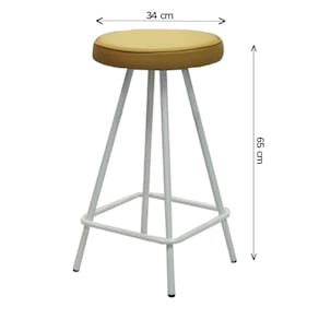 - Produto segue montado, não acompanha manual de montagem: - Assento em couro sintético. - Estrutura em tubo de aço com pintura epóxi-pó - Tonalidade do Produto: Branco / Mostarda