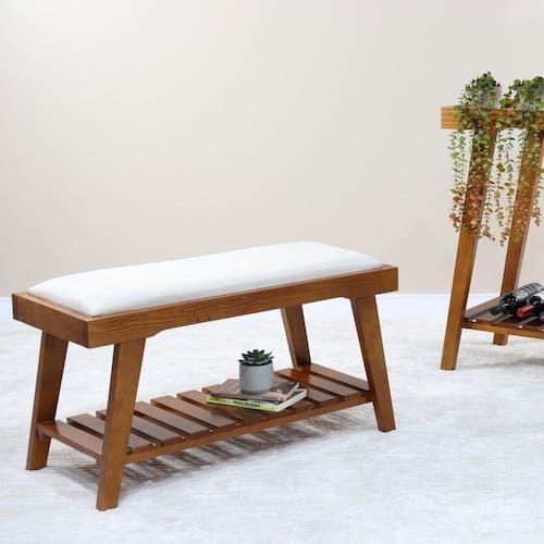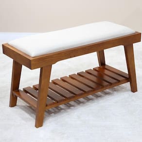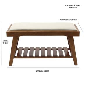Se você procura conforto e qualidade, o Banco Gaia é a opção certa, produzido em madeira maciça e seu assento estofado, vai tornar suas horas de lazer e descanso ainda mais prazerosas. Além disso possui um apoio ripado que pode ser utilizado para calçados ou até mesmo uma decoração, tornando o banco ainda mais moderno. Seu assento estofado com espuma D23, e tecido com 52% de algodão e 48% em poliéster. Acabamento da Estrutura: Verniz Ambiente Principal: Sala de Estar Cor: Pinhão Cor do Produto: Pinhão Escala de Brilho: Semi-Fosco Itens Inclusos: 1 Banco com Apoio Material do Assento: Almofada com Espuma Material dos Pés: Madeira Maciça Necessita Montagem: Não Origem do Produto: Nacional Peso: 11 kg Possui Almofada no Assento: Não Possui Encosto: Não Quantidade de Lugares: 02 Recomendações de Uso, Manutenção e Limpeza: Limpeza, apenas com pano úmido Resistente à Chuva: Não Tipo de Madeira Maciça: Pinus Ean: 7909903347362