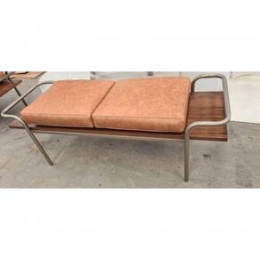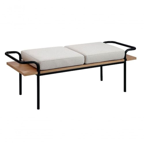 Banco Urbano - com base de metal pintado, assento em madeira laminada com almofadas. Revestimento em tecido.