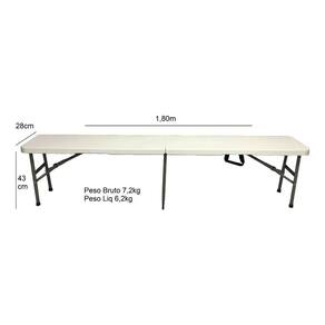 Banco Maleta VGHome 4 lugares 180x28x43cm Cor Branca Descrição Comprimento 1,80m Altura Fixa 43cm Largura 28cm Peso Bruto 7,2kg Peso Liq 6,2kg Embalagem fechada 28,5x8,5x91cm Com trava nos pés Montagem simples, basta abrir o tampo e abrir os pés Cor do tampo Branca Cor da ferragem Cinza Tampo em Polipropileno de alta densidade Pés e suportes internos em ferro com pintura especial Capacidade 4 pessoas 350kg Marca: Não Informado