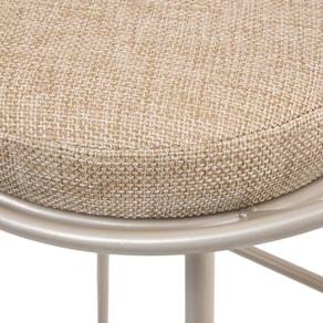 *Diâmetro do Assento: 31cm Acabamento da Estrutura: Pintura Almofada do assento: Fixa Altura do assento até o chão: 65 cm Altura do Encosto: 84 cm Altura Regulável: Não Ambiente Principal: Cozinha Cor: Champanhe/ Areia Cor do Produto: Champanhe/ Areia Dobrável: Não Enchimento do Assento: Espuma D-25 Escala de Brilho: Semi-Brilho Itens Inclusos: Móvel Linha ou Coleção: Sunset Manual de Montagem e Instalação: https://product-hub-prd.madeiramadeira.com.br/954464/documents/574f4fcb-57ac-40a2-896a-5705663294a12390595598117273742278331.pdf Material do Assento: Almofada com Espuma Material do Encosto: Aço Necessita Montagem: Não Origem do Produto: Nacional Peso: 6,5 kg Possui Almofada no Assento: Sim Possui Apoio Para os Pés: Sim Possui Encosto: Sim Possui Rodízio: Não Recomendações de Uso, Manutenção e Limpeza: Na remoção da poeira utilize flanela limpa e levemente umedecida. Não exponha à luz solar e locais úmidos. Não encoste o móvel na parede para evitar transmissão de umidade. Revestimento do Assento: Linho Tipo de Assento: Fixo Tipo de Encosto: Fixo Marca: Estampaço
