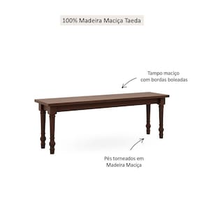 Disponível nas tonalidades Freijó e Café, ele se adapta com harmonia a diferentes estilos de decoração, sempre destacando a textura natural da madeira e seu acabamento de alto padrão. Acabamento da Estrutura: Pintura Ambiente Principal: Sala de Jantar codigo_ean: 7900288337726 Complexidade da Montagem: Média: pode ser montado por mais de uma pessoa e/ou necessite de maior conhecimento para montagem Cor: Café Cor do Produto: Café Escala de Brilho: Fosco Itens Inclusos: 1 Banco, Kit Ferragens e Manual de Montagem Linha ou Coleção: Rubi Manual de Especificação Técnica: https://product-hub-prd.madeiramadeira.com.br/123253977/documents/69ca929d-7ed0-4675-8704-a54695995efe3404260479517716112579493.pdf Manual de Montagem e Instalação: https://product-hub-prd.madeiramadeira.com.br/123253977/documents/f171fa00-fcc4-4be6-a471-76b8ede321ba3404262479517716112736076.pdf Marca: Finestra Material do Assento: Madeira Maciça Material dos Pés: Madeira Maciça Material Principal: Madeira Maciça Necessita Montagem: Sim Origem do Produto: Nacional Peso: 10,1 kg Possui Almofada no Assento: Não Possui Apoio para Braços: Não Recomendações de Uso, Manutenção e Limpeza: Seguir a ordem do manual de montagem; Evitar batidas e contato com objetos cortantes; Não deixe o móvel em locais muito úmidos; Limpar com pano levemente umedecido com água, seguido de pano seco; Não utilizar produtos químicos ou abrasivos; Evite incidência direta de luz solar; Algumas pinturas novas, embora atóxicas, podem apresentar odores. Para amenizá-los, matenha o móvel em local arejado nos primeiros dias de uso. Resistente à Chuva: Não Sistema de Montagem: parafusos; Suporta Até (kg): 200 kg Tipo de Madeira Maciça: Pinus