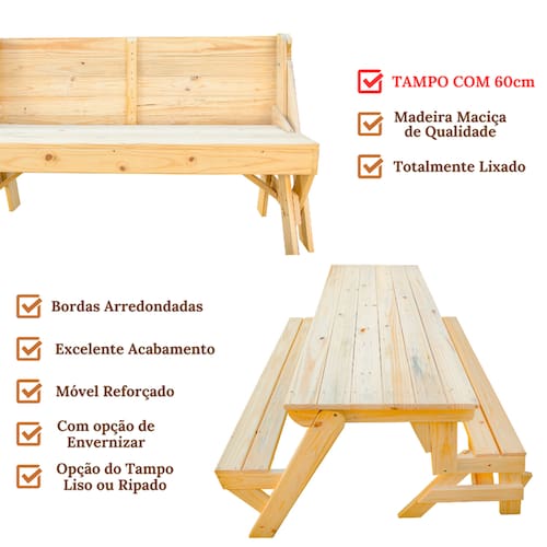 O Banco que Vira Mesa é um móvel multiuso que pode ser utilizado como banco ou como mesa. É uma ótima opção para quem deseja aproveitar ao máximo o espaço disponível, seja em um quintal, varanda ou área de churrasco.