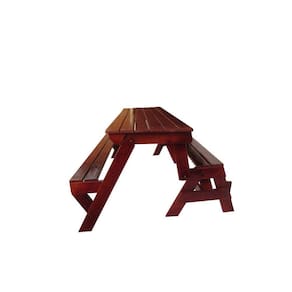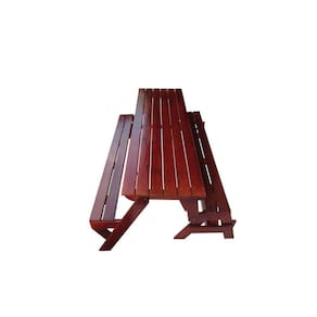 BANCO QUE VIRA MESA 2m PARA 08 PESSOAS COM TAMPO E ASSENTOS RIPADOS E COM VERNIZ MARÍTIMO HIDROREPELENTE NA TONALIDADE MOGNO