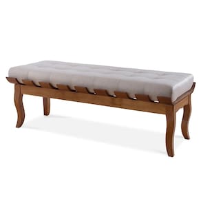 CARACTERÍSTICAS TÉCNICAS: - Estrutura Produzida em Madeira Maciça Sustentável de Reflorestamento - Detalhes Ondulados Produzidos em MDF Madeirado - Acabamento em Verniz na cor Imbuia - Assento Estofado Preenchido com Espuma D23 - Revestimento em Tecido Linho na cor Bege M58 - Peso Suportado de até 120kg - Recamier Entregue Semi Montado