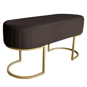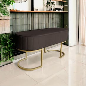 Banco Recamier Estofado Luana Base Gold Veludo Marrom - Montanaris Decor