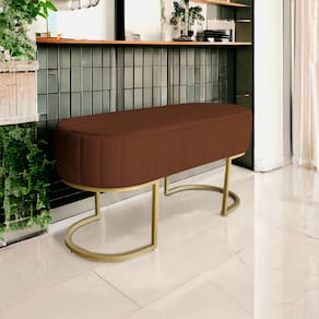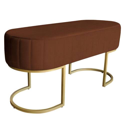 Banco Recamier Estofado Luana Base Gold Veludo Terracota o Banco Luana é o produto perfeito para quem quer combinar Estilo, Conforto e Praticidade. Esta é uma ótima opção para ornar sua sala, quarto ou qualquer outro espaço, proporcionando máximo conforto e confiabilidade para sua família, amigos e convidados.