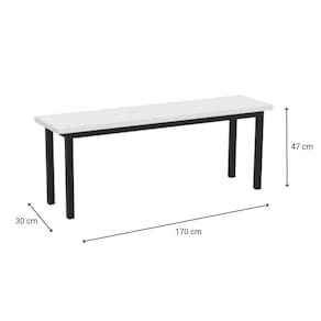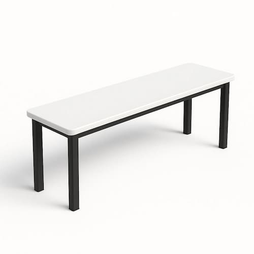 Características Técnicas: Produto: Banco Marca: Geeb Work Tampo Cor: Branco Base: Preto Capacidade: 4 lugares Indicação de Uso: Refeitórios, vestiários, áreas de convivência, empresas, escolas, indústrias e escritórios Tipo: Banco fixo de uso coletivo Design: Clean, minimalista e funcional Acabamento: Superfície lisa e fácil de limpar Construção: Estrutura projetada para alta resistência ao uso frequente Assento: Base reta projetada para estabilidade e conforto rápido