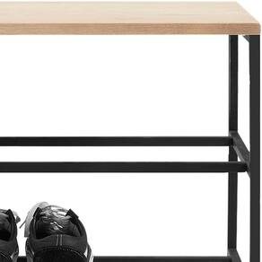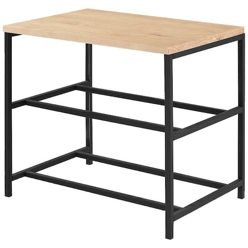 Banco Sapateira Industrial Em Aço Preto F84 Pinus Natural Dmobiliario Preto Natural