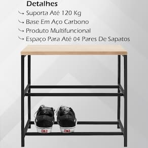 Capacidade de Pares: 4 | Produto: Banco Sapateira | Cor: Colorido | Fabricação: DAFMobiliario | Modelo: Industrial Cor: Preto Natural