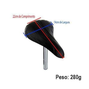 - uso: urbano/lazer - fixação: canote fixo - material: base plástica e espuma de poliuretano pu - medidas: 220mm x 140mm x 70mm -canote metálico de fixação - cor: preto - peso aproximado: 280g