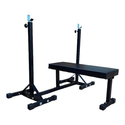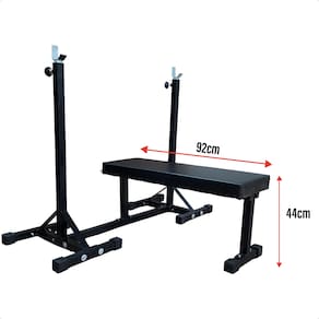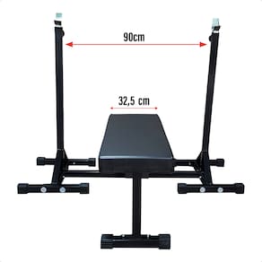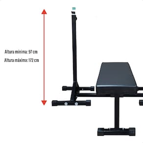 #ESPECIFICAÇÕES TÉCNICAS - Comprimento do banco: 92 cm - Largura do assento: 32,5 cm - Altura do banco: 44 cm - Regulagem de altura para suporte: Mínima: 97 cm, Máxima: 172 cm - Material: Estrutura em aço carbono com pintura eletrostática - Estofado: Revestimento sintético resistente e fácil de limpar - Capacidade máxima de carga: Adaptável a treinos intensos
