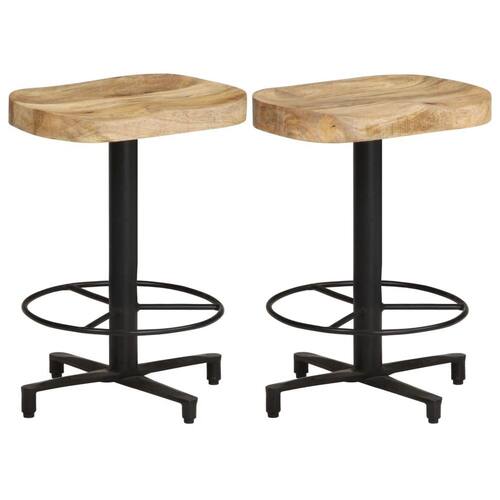 Desfrute de uma taça de vinho, coma algo ou simplesmente relaxe nesses bancos de bar de madeira maciça de manga. A madeira de manga é uma madeira dura tropical que é resiliente e resistente ao desgaste. O artesanato requintado e os belos grãos de madeira tornam cada peça única. A base de ferro com revestimento em pó oferece estabilidade extra. Esses bancos de bar também possuem apoios de pés embutidos para maior diversão. Nota importante: A cor e o grão da madeira podem variar de item para item, tornando cada banco de bar de madeira único.
