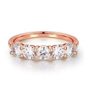 - Design: um anel de aniversário de moissanita de 5 pedras brilhante projetado com cinco 3,75 mm redondo D Color VVS1 Clarity Lab Criada outras pedras Moissanite em uma configuração de pinos compartilhados, o anel de casamento de prata esterlina S925 sólido em ouro branco 14K é confortável o suficiente para expressar seu amor todos os dias, seja deslumbrante sozinho ou empilhado com seus favoritos.