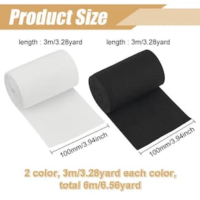 BENECREAT Faixa elástica de malha de alta elasticidade branca e preta de 10 m de largura (3,3 metros/cor) O pacote inclui: Faixa elástica branca e preta de 10 cm de largura; branco 3,3 jardas; preto 3,3 jardas/p> TAMANHO DETALHADO: 100 mm de largura, 3,3 jardas de comprimento por rolo; 6,6 jardas no total Material de qualidade: 69% poliéster, 31% borracha. Malha pesada de alta elasticidade. ALTA ELASTICIDADE: Alta elasticidade para trabalhos manuais; adequado para ser utilizado como cintura para completar uma saia ou calça franzida. AMPLA UTILIZAÇÃO: Perfeito para bordas de faixas de cintura, shorts, saia, roupa de maternidade ou confecção de roupas; você também pode ajustar o tamanho de roupas, roupas e etc. - ?PACOTE INCLUI?: Vem com faixa elástica branca e preta de 10 cm de largura; branco, 3,3 jardas; preto 3,3 jardas - ?TAMANHO DETALHADO?: 100 mm de largura, 3,3 metros de comprimento por rolo; 2 rolos de faixas elásticas, 6,6 jardas no total - ?MATERIAL DE QUALIDADE?: 69% poliéster, 31% borracha; Alta resistência e recuperação elástica, não é fácil de deformar - ?Boa elasticidade?: o elástico pode restaurar facilmente o comprimento autêntico sem deformação na faixa de tração permitida. Adequado para ser utilizado como cintura para completar uma saia ou calça franzida - ?AMPLA UTILIZAÇÃO?: Pode ser utilizado para bordas de faixas de cintura, shorts, saia, roupa de maternidade, fabricação de roupas ou mudança de tamanho de roupas; também é ótimo para projetos DIY e assim por diante
