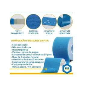 Bandagem kinesio tape kit com 5 bandagens elasticas 5cm x 5m A bandagem elástica adesiva foi desenvolvida para quem busca realizar suas atividades físicas com mais segurança e conforto, diminuindo o risco de lesões típicas das partidas de futebol, vôlei, basquete, tênis, e até mesmo das corridas e caminhadas do dia-a-dia e ainda para aqueles casos em que a lesão está em recuperação e que por autorização médica pode ser praticada, pois com a bandagem a segurança é comprovada. Ela age como reforço muscular, auxilia na recuperação de lesões, inchaço, mantém a temperatura ajudando a circulação linfática. A fita é aplicada com diversos objetivos: - diminuir a dor e a sensação de desconforto; - promover suporte durante a contração muscular; - diminuir a congestão do fluxo linfático; - diminuir o extravasamento sanguíneo para o subcutâneo; - ajudar na correção de desvios articulares; - promover auxílio na contração muscular. Ações e benefícios: - fácil aplicação - resistente à água, pode ser usada durante o banho e em qualquer atividade aquática - dura entre 3 a 4 dias se aplicada corretamente - ondas para a circulação do ar - espessura leve como a da pele Contra indicações: - não aplicar sobre tecidos frágeis ou em fase de cicatrização - não aplicar sobre regiões com atividade maligna ca - não aplicar sobre infecções ativas - não aplicar em caso de alergia a polímeros derivados do petróleo. Dados técnicos: - tamanho 5cm x 5 m