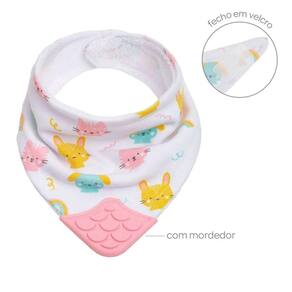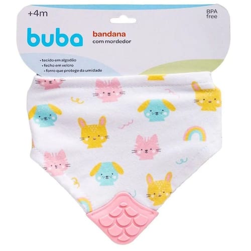 Bandana Baby Com Mordedor Happy Friends Buba Cor: Rosa Bandana Baby Com Mordedor Happy Friends Buba O babador bandana com mordedor da Buba é super charmoso, com designer moderno e funcional, priorizando o conforto do pequeno. Além de proteger a roupinha para não sujar ou molhar, possui um mordedor com textura na ponta que ajuda a aliviar o desconforto causado pelo nascimento dos primeiros dentinhos do bebê. Feito em tecido de algodão, com forro que protege da umidade e fecho em tiras aderentes que se ajusta facilmente ao pescoço do bebê. Composição: Frente: 100% Algodão; Verso: 50% Polímero Termoplástico, 50% Poliéster; Mordedor: 100% TPE. Idade recomendada: a partir de 4 meses. Marca: Não Informado Ean: 7908103752815