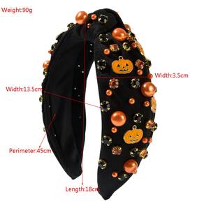 Especificações e materiais: tecido + pérolas + strass Cor: preto Peso: 90 g Dimensões do produto: 18* 13,5 cm, circunferência 45 cm Lista de embalagem: 1 x bandana • Design com tema de Halloween: apresenta divertidos pingentes de abóbora combinados com strass e pérolas cintilantes, criando um acessório sazonal festivo e atraente. • Estilo amarrado confortável: base de tecido macio com um nó clássico O design adiciona volume e textura, oferecendo um ajuste seguro e confortável. • Detalhes decorativos brilhantes: pérolas alaranjadas misturadas, pedras pretas e detalhes em cristal brilhante proporcionam um toque ousado e um look animado, perfeito para festas e eventos temáticos. • Forro interno antiderrapante: projetado com um interior macio e solidário para permanecer no lugar durante todo o uso sem puxar o cabelo. • Durável e versátil: feito com tecido de qualidade, strass e elementos de pérolas, ideal para estilizar diariamente o Halloween, reuniões ou coordenar fantasias.