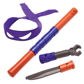 Kit de fantasia infantil com faixa roxa e bastão de brinquedo em plástico. Ideal para brincadeiras criativas, festas à fantasia e momentos de diversão. Leve, seguro e fácil de manusear pelas crianças.
