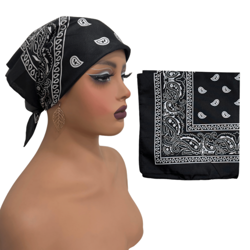 - Material leve e macio: poliéster flexível e confortável. - Estampas geométricas modernas: dão um toque de estilo único.- Uso versátil: pode ser usada como faixa de cabelo, lenço de pescoço, pulseira, acessório de moda, proteção contra o sol, máscara improvisada e muito mais.- Tamanho ideal: 50cm x 50cm, permitindo diversas formas de amarração.