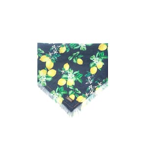 Bandana Limone Confeccionada em linho misto com viscose, possui acabamento desfiado e estampa exclusiva, pode ser Utilizado sozinha ou com outras peças de roupa proporcionando uma maior proteção ao seu pet além de deixá-lo bem vestido mesmo no calor. Modelagem de triângulo exclusiva Zampe. Verifique AQUI a medida ideal para o seu Pet.