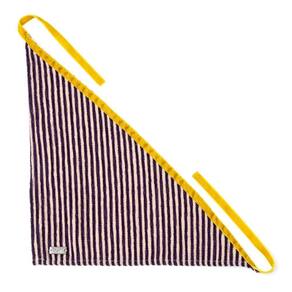 A Bandana Mila é feita em modelagem triângulo em tecido especial com listras em Chenille e amarração com fita de veludo francesa dupla face.