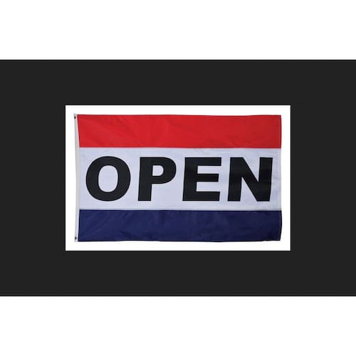 - A bandeira aberta de poliéster com ilhós de 9,5 cm x 1,5 m vem com ilhós de latão