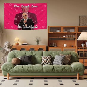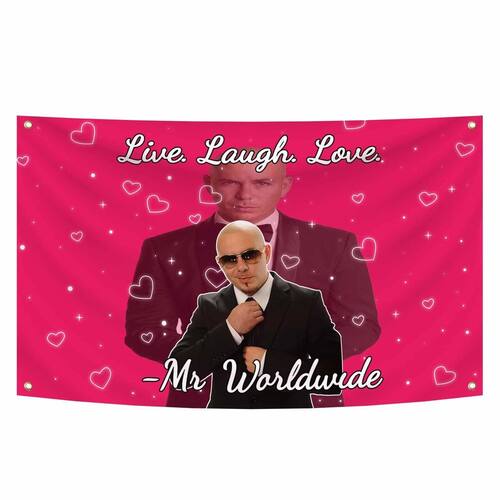 Faça uma declaração marcante com esta vibrante bandeira de 91x152 cm apresentando a icônica mensagem "Live Laugh Love" em um fundo rosa chamativo. Perfeita para adicionar personalidade ao seu dormitório universitário, espaço de lazer masculino, república estudantil ou qualquer ambiente que precise de um toque de estilo e humor. A bandeira vem equipada com 4 ilhós de latão para fácil fixação e durabilidade. O design atraente apresenta uma estética elegante com terno preto contra o fundo rosa, complementado por corações decorativos e efeitos de brilho que criam um visual envolvente. Esta bandeira é ideal para uso interno ou externo, tornando-a versátil para servir como decoração de parede ou como banner externo. As grandes dimensões de 91x152 cm garantem alta visibilidade, enquanto a construção de qualidade suporta uso regular. Se você quer fazer uma declaração ou adicionar caráter ao seu espaço, esta bandeira oferece estilo e substância.