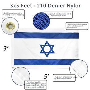Série EverStrong Esta bandeira de Israel resistente é feita de material de nylon durável para ajudar a suportar ambientes externos ventosos. Não compre uma bandeira de poliéster fina de papel que será arrancada dentro de uma semana! Você apreciará totalmente o acabamento e a qualidade desta bandeira. Listras bordadas e costuradas Quando sua bandeira chegar em sua casa ou empresa, você verá imediatamente o incrível acabamento. Lindamente construída com listras bordadas e costuradas! Resistente Esta bandeira tem 4 linhas de costura de trava na extremidade voadora e dois ilhós de latão forte no cabeçalho para melhorar a durabilidade. É garantido que voará por um longo tempo! ESPECIFICAÇÕES Importado. Feito de 100% nylon. O pacote contém uma bandeira de nylon de Israel resistente de 9,5 x 1,5 m da ANLEY. GARANTIA Compromisso - Garantimos nossos produtos! Sinta-se à vontade para entrar em contato conosco se tiver alguma dúvida ou preocupação. - Série Everstrong - Feito de material de nylon pesado durável que é à prova d'água para ajudar a suportar ventos ao ar livre. Não compre aquelas bandeiras de poliéster finas de papel que serão arrancadas dentro de uma semana! - Costura bordada - Artesanato incrível, lindamente construído com listras bordadas e costuradas! - Resistente – Esta bandeira tem 4 linhas de costura de trava na extremidade voadora para evitar que seja rasgada e dois ilhós de latão fortes no cabeçalho para melhorar a durabilidade. Garantia de voar por um longo tempo. - Especificação - Importado. Feito de 100% nylon. O pacote contém uma bandeira de nylon resistente de Israel da série Everstrong Anley de 9,5 x 1,5 m. - Compromisso - Garantimos nossos produtos! Sinta-se à vontade para entrar em contato conosco se tiver alguma dúvida ou preocupação.