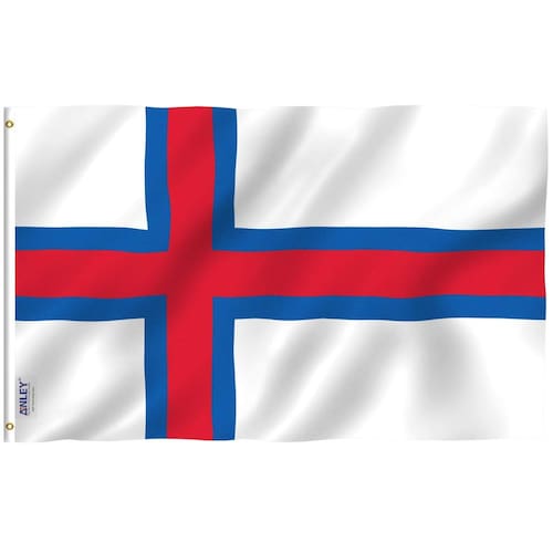 Bandeira ANLEY Fly Breeze de 3 x 5 pés das Ilhas Faroé — Cor viva e à prova de desbotamento — Cabeçalho de lona e costura dupla — Bandeiras feroesas de poliéster com ilhós de latão de 3 x 5 pés