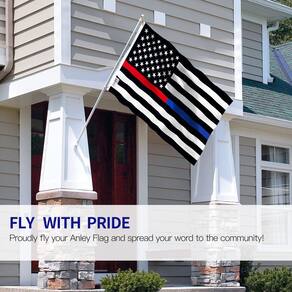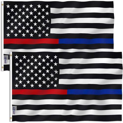 - Especificação - Importada. Feito de 100% poliéster. O pacote contém duas bandeiras Anley, 3 x 5 pés, fly breeze, Thin Blue Line e Red Line, dos EUA.