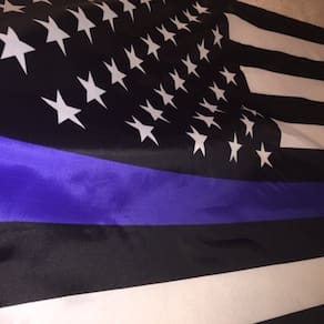 - Especificação - Importada. Feito de 100% poliéster. O pacote contém uma bandeira dos EUA Thin Blue Line de 3 x 5 pés Fly Breeze.