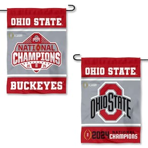 Ideal para o seu jardim ou entrada de casa é nossa bandeira de jardim. Esta bandeira de jardim de dupla face mede 33 cm x 45 cm, tem uma borda de costura dupla, uma manga superior de 2,5 cm e é feita de poliéster de 2 camadas para que os logotipos sejam visíveis e legíveis corretamente em ambos os lados. Os logotipos OSU Buckeyes impressos em tela são oficialmente licenciados e aprovados por equipe, faculdade ou universidade. (Apenas bandeira, suporte de jardim e acessórios vendidos separadamente) - Tamanho de 33 x 45 cm com manga superior para pendurar no seu suporte de jardim (suporte de jardim vendido separadamente) - Feito de dupla face 2-ply 100% poliéster com forro costurado, costura de perímetro de costura dupla, importado - Os logotipos de campeonatos, campeões nacionais e jogos são impressos em tela, visíveis e legíveis corretamente em ambos os lados - Ideal para o seu jardim, janela, entrada frontal ou como um pequeno banner - Os logotipos de faculdade, universidade e eventos são oficialmente licenciados e aprovados pela equipe