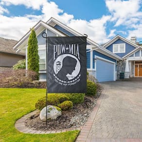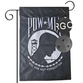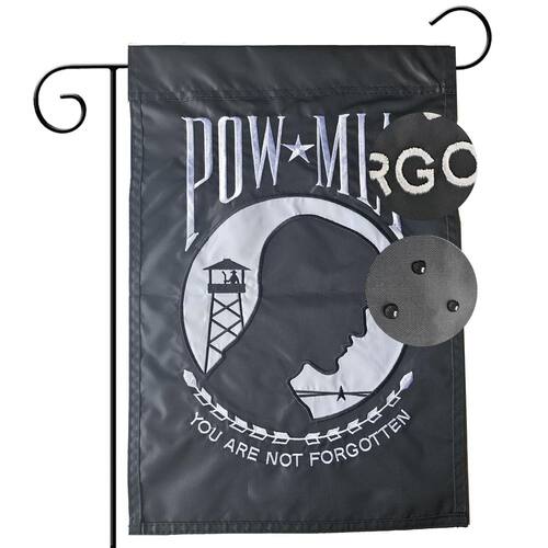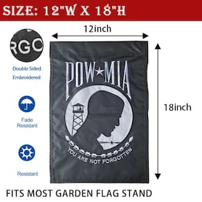 — Fácil de pendurar: a bandeira pow mia garden tem 12 polegadas de largura e 18 polegadas de comprimento. Toda decoração de bandeira de jardim militar 12x18 frente e verso tem uma manga na parte superior, que pode ser usada com qualquer suporte padrão