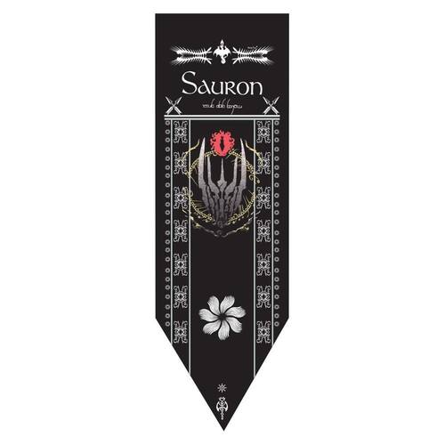 A Bandeira Flâmula Sauron traz a representação sombria e icônica do Senhor do Escuro, figura central da saga O Senhor dos Anéis. Sauron foi o grande antagonista da Terra-média, mestre do Um Anel e responsável por eventos que moldaram as Segunda e Terceira Eras, até sua queda definitiva com a destruição do Anel.