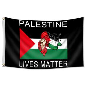 Material: poliéster (pongee) Tamanho: 150 cm × 90 cm Peso: 120 g Apresenta um design arrojado e impactante com a bandeira palestina e o punho cerrado, simbolizando força, união e luta pela justiça. Feito de material de poliéster durável, garantindo qualidade duradoura e resistência ao desbotamento, perfeito para uso interno e externo. Mede 90 x 150 cm, tamanho ideal para ser pendurado em comícios, protestos ou como parte de sua exibição pessoal ou pública de apoio aos direitos palestinos. Equipado com ilhós de latão para facilitar a suspensão, sem mastro incluído, oferecendo opções de exibição versáteis para diferentes configurações. Perfeito para ativistas, defensores da liberdade palestina ou qualquer pessoa apaixonada por promover a paz e a justiça.