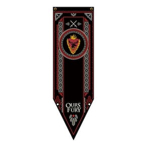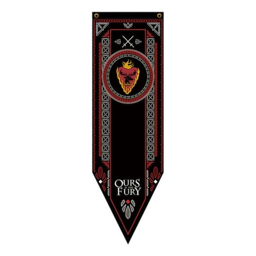 Entre no mundo de poder e intriga de Westeros com esta bandeira flâmula detalhada da Casa Baratheon, uma das famílias mais importantes e influentes da saga Game of Thrones. Feita em Tactel resistente, esta bandeira é uma peça de colecionador indispensável para os fãs mais devotos da série.
