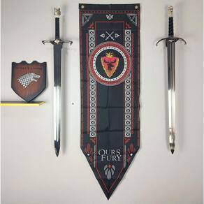 Adicione um toque de nobreza e autenticidade à sua coleção com esta bandeira flâmula da Casa Baratheon de Game of Thrones. Fabricada em Tactel de alta qualidade, esta bandeira apresenta o brasão distintivo da Casa Baratheon em uma dimensão de 150cm de comprimento e 48cm de largura.