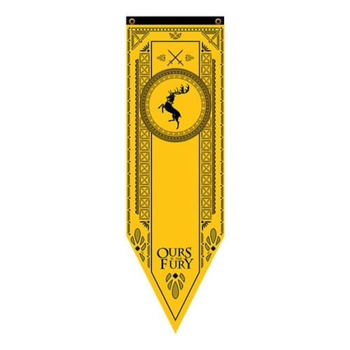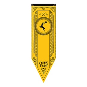 Adicione um toque de nobreza e autenticidade à sua coleção com esta bandeira flâmula da Casa Baratheon de Game of Thrones. Feita em Tactel de alta qualidade, esta bandeira apresenta o brasão distintivo da Casa Baratheon em uma dimensão de 150cm de comprimento e 48cm de largura.