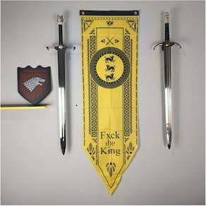 Adicione um toque de nobreza e autenticidade à sua coleção com esta réplica oficial da bandeira flâmula da Casa Cleogane de Game of Thrones. Feita em Poliéster de alta qualidade, esta bandeira possui o brasão distintivo da Casa Cleogane em uma dimensão de 150cm de comprimento e 48cm de largura.