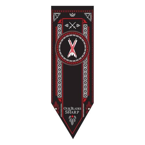A Bandeira Flâmula Casa Bolton de Game of Thrones é um item ideal para fãs da série e colecionadores que desejam exibir em seu espaço um símbolo marcante da trama. A Casa Bolton, infame pela prática cruel de esfolar seus inimigos, tornou-se uma das mais temidas do Norte após o Casamento Vermelho. O brasão da Casa retrata um homem esfolado vermelho de cabeça para baixo sobre fundo preto, e seu lema, Our Blades Are Sharp, reforça sua reputação implacável.
