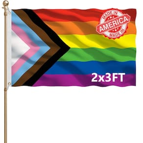 - 100% fabricadas nos EUA: todas as matérias-primas, impressão, costura, logística e transporte das bandeiras keyca estão todas nos Estados Unidos e cada bandeira Progress Rainbow 2x3 tem uma marca de certificação exclusiva feita nos EUA impressa em sua cintura.