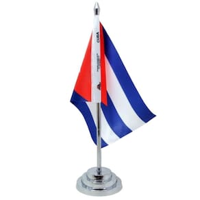 A Bandeira Mesa Cuba Dupla Face Mastro Com Mastro 29 Cm é perfeita para decorar o ambiente com estilo. Feita em tecido poliéster de alto brilho, ela possui estampa nas duas faces, garantindo um visual completo.