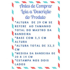 * MEDIDA DE 29 CM SE REFERE AO TAMANHO DA HASTE DA BANDEIRA