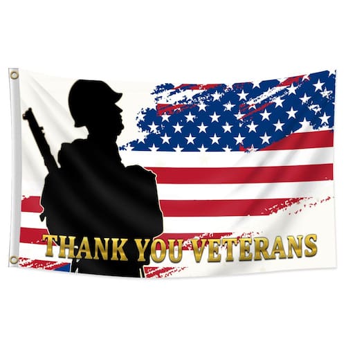 Material: poliéster (pongee) Tamanho: 150 cm × 90 cm Peso: 120 g Bandeira comemorativa dos veteranos: mostre sua gratidão com esta bandeira “Obrigado Veteranos”, com a silhueta de um soldado com um fundo ousado da bandeira americana. Material de poliéster durável: feita de poliéster de alta qualidade, esta bandeira foi projetada para resistir aos elementos e pode ser usada tanto em ambientes internos quanto externos. Perfeito para eventos de lembrança: ideal para o Dia dos Veteranos, Dia da Memória ou qualquer outro evento dedicado a homenagear veteranos e seus sacrifícios. Nenhum mastro de bandeira incluído: a bandeira vem com ilhós de latão para facilitar a suspensão, mas nenhum mastro está incluído, oferecendo flexibilidade na exibição. Cores vivas e duradouras: o design e as cores arrojados são resistentes ao desbotamento, garantindo que sua bandeira permaneça vibrante por muitos anos.