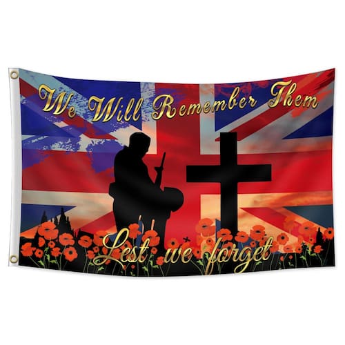 Material: poliéster (pongee) Tamanho: 150 cm × 90 cm Peso: 120 g Design comemorativo: apresenta as frases sinceras “Vamos nos lembrar deles” e “Para que não esqueçamos”, junto com uma imagem poderosa da silhueta de um soldado em frente à Union Jack e às papoulas. Material de qualidade premium: feita de tecido de poliéster durável, esta bandeira é perfeita para uso interno e externo durante eventos memoriais e patrióticos. Perfeito para o Dia da Lembrança: ideal para homenagear veteranos, militares e aqueles que serviram, especialmente no Dia da Lembrança e no Dia dos Veteranos. Fácil de pendurar: vem com ilhós de latão para facilitar a exibição sem um mastro, facilitando a instalação em memoriais, residências ou espaços públicos. Resistente ao desbotamento: as cores vibrantes são projetadas para resistir aos elementos, garantindo uma beleza duradoura mesmo quando expostas à luz solar e às intempéries.