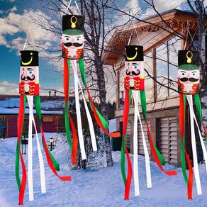 Material: poliéster Tamanho: 100 cm Peso: 260 g Apresenta uma estampa festiva de soldado Quebra-Nozes com fitas coloridas, adicionando um toque extravagante e alegre às suas celebrações de Natal ou feriado. Feita de tecido de poliéster durável, garantindo que esta bandeira seja leve, resistente ao desbotamento e adequada para uso interno e externo. Com o tamanho de 100x15cm, esta bandeira de biruta é ideal para pendurar em cercas, árvores, varandas ou como parte da decoração da sua festa de Natal. A bandeira não inclui um mastro, permitindo opções de exibição flexíveis que podem se adequar a qualquer configuração, de paredes a espaços ao ar livre. Uma ótima maneira de trazer alegria festiva para sua casa ou jardim, perfeita para criar uma atmosfera de férias em reuniões familiares, festas e celebrações.