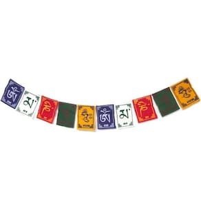 As Bandeiras de Oração Budista Tibetana Om Mani Padme Hum Mantra são um item sagrado e cheio de significado. Essas bandeiras são tradicionalmente penduradas em locais onde o vento pode levá-las, como montanhas, árvores, pontes e monastérios ao ar livre. As cores das bandeiras representam os cinco elementos: azul para o céu, vermelho para o fogo, verde para a água, amarelo para a terra e branco para o ar.