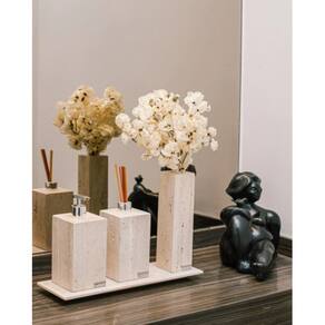 - Durabilidade: Fabricada em Mármore Travertino Romano, que garante longa vida útil.